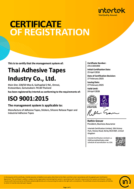 Thai Tape products are quality-checked through internationally certified laboratories.